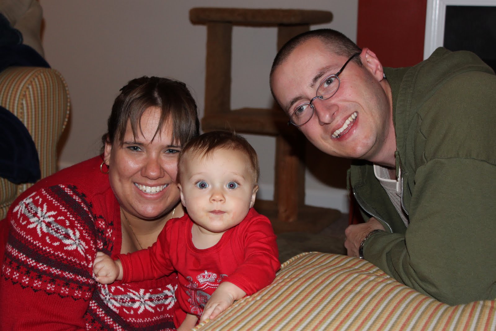 Opening presents with my mom and dad